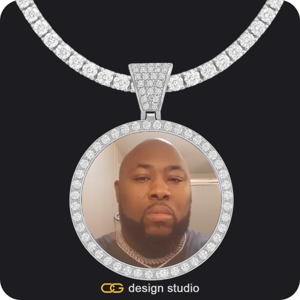 Butterfly initial necklace - F,Custom Photo Pendant - Silver / Circle (4 cm) / Tennis