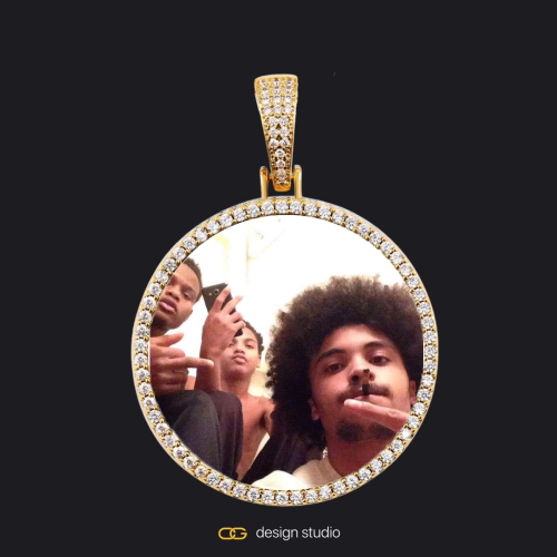 Clover Initial Necklace - K / 16 inch,Custom Photo Pendant - Gold / Circle (4 cm) / Cuban (10mm)