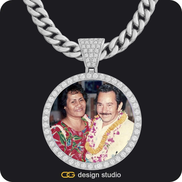 Clover Initial Necklace - K / 18 inch,Custom Photo Pendant - Silver / Circle (4 cm) / Cuban (10mm)