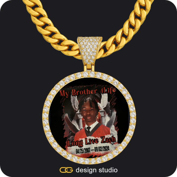 Clover Initial Necklace - R / 18 inch,Custom Photo Pendant - Gold / Circle (4 cm) / Cuban (10mm)