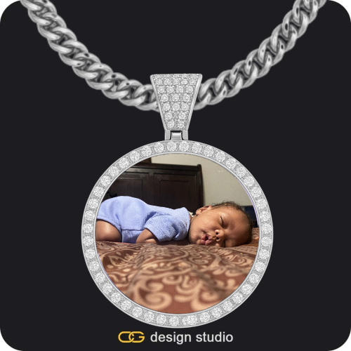 Custom Photo Pendant - Silver / Circle (4 cm) / Tennis,Custom Photo Pendant - Silver / Circle (4 cm) / Cuban (5mm)