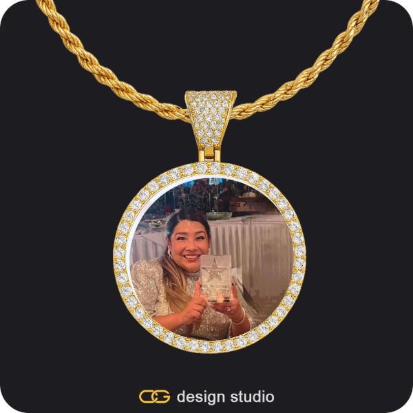 The Essential Stud Name Earrings,Custom Photo Pendant - Gold / Circle (3 cm) / Rope